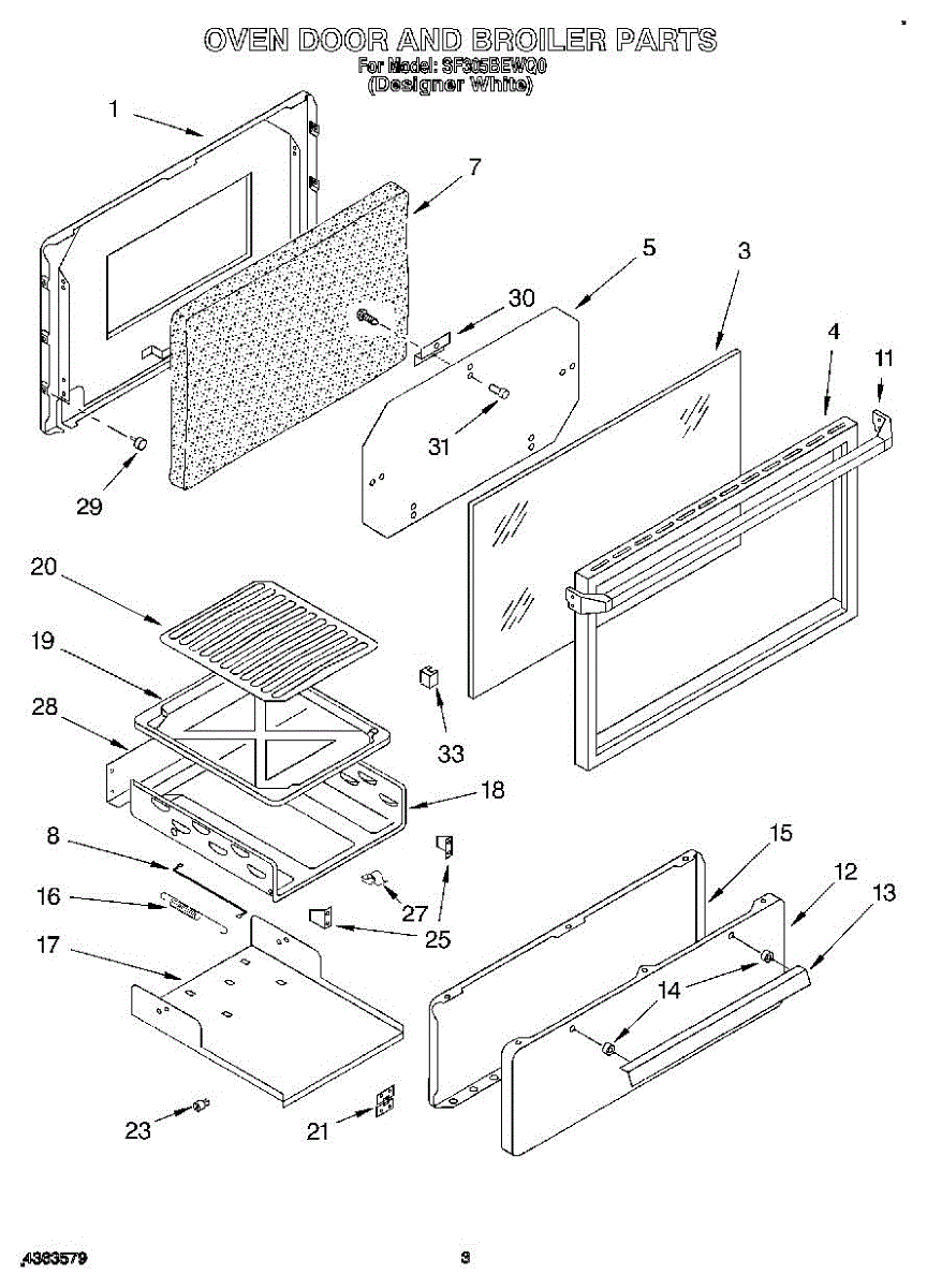 Parts for Whirlpool SF305BEWQ0: 02 - Oven Door And Broiler Parts