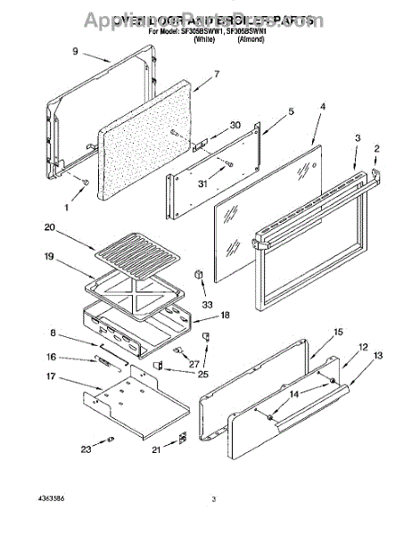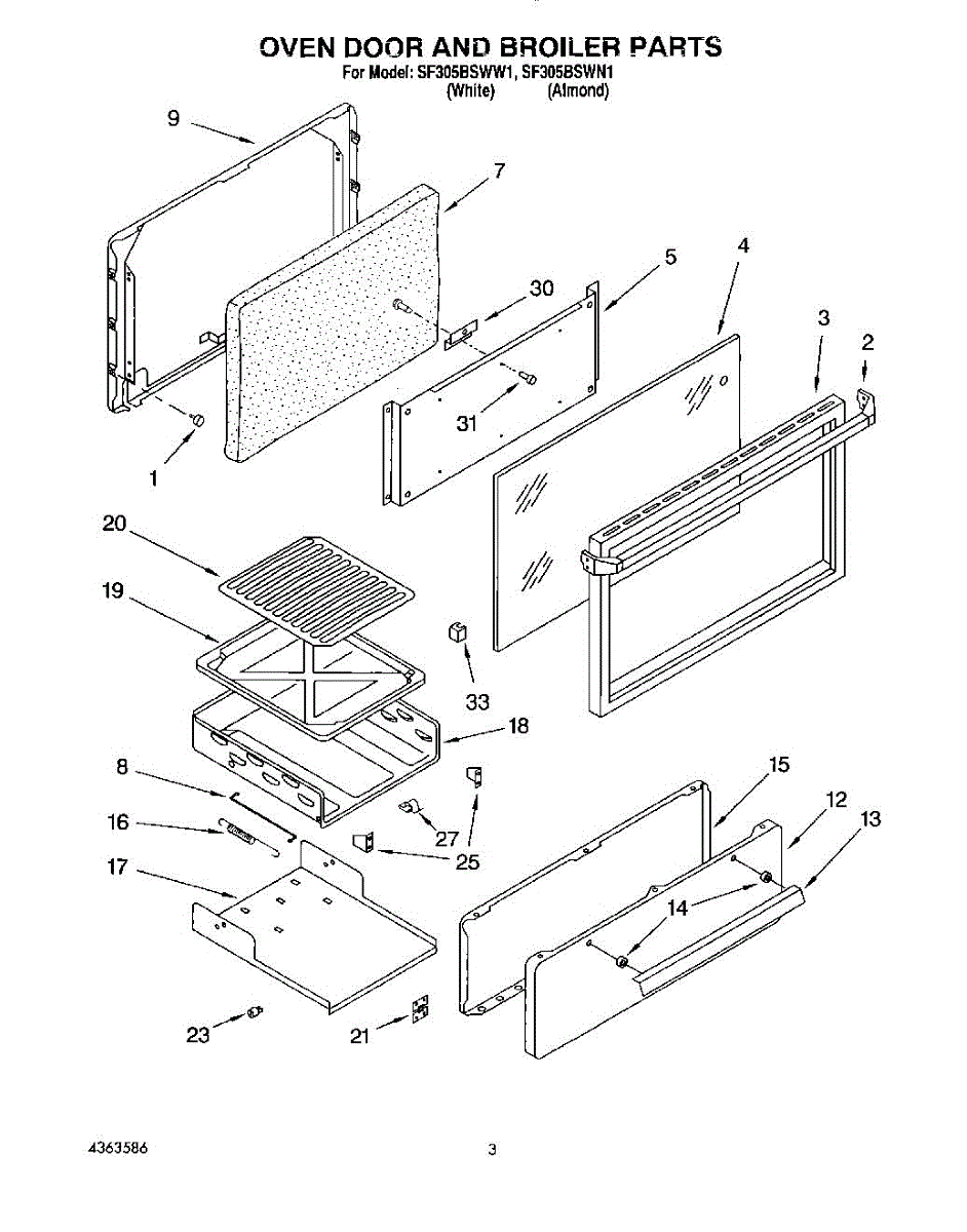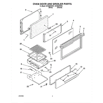 Parts for Whirlpool SF305BSWW1: 02 - Oven Door And Broiler Parts