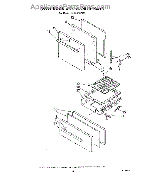 Parts for Whirlpool SF305ESPW0: 04 - Oven Door And Broiler Parts