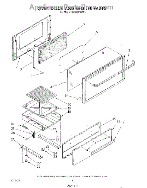 Parts for Whirlpool SF305ESRW5: 04 - Oven Door And Broiler Parts