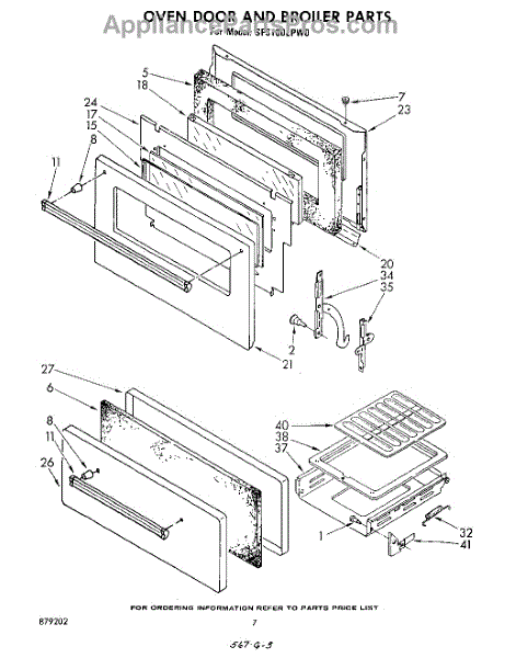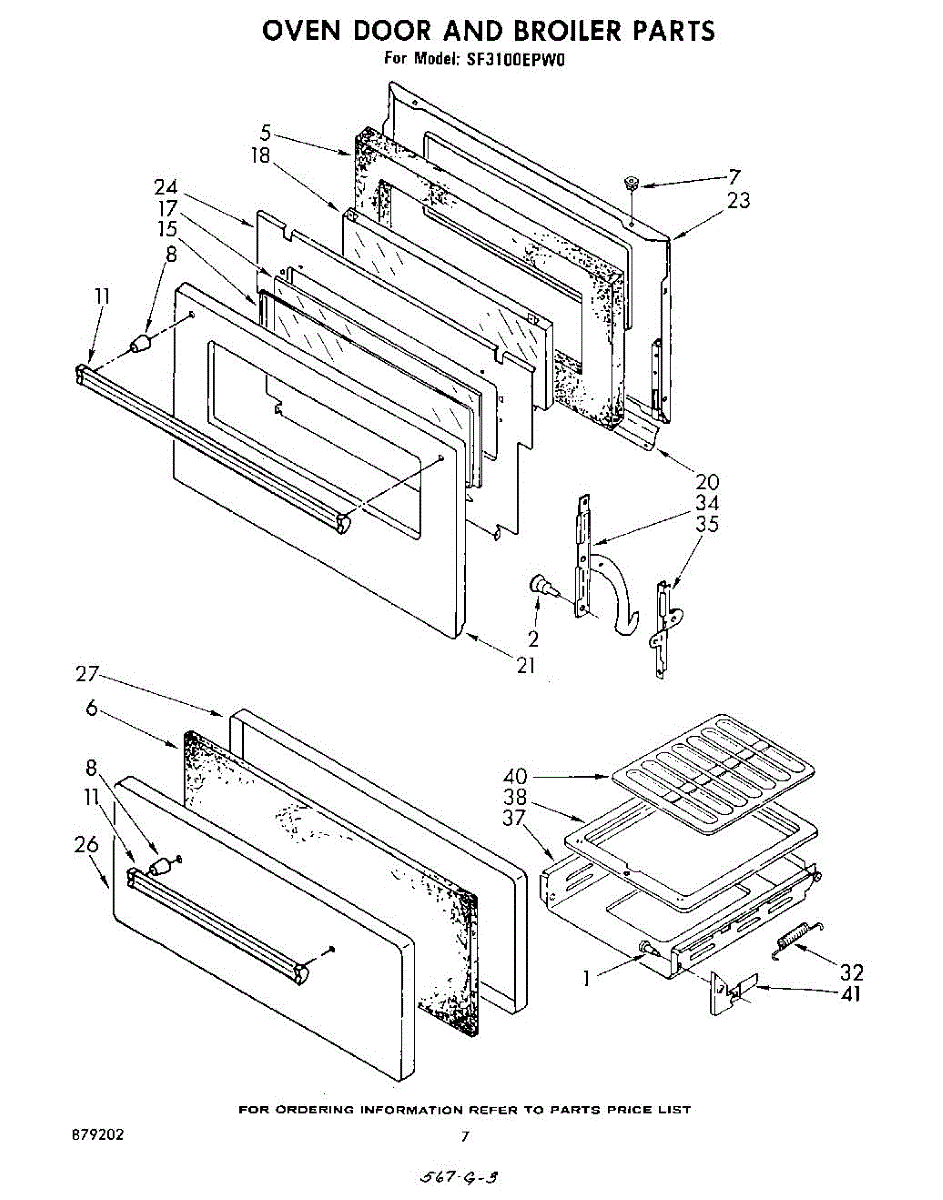 Parts for Whirlpool SF3100EPW0: 05 - Oven Door And Broiler Parts