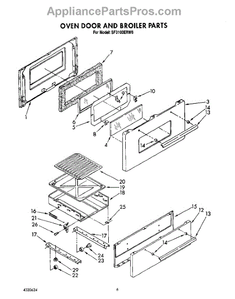 Parts for Whirlpool SF3100ERW6: 05 - Oven Door And Broiler Parts
