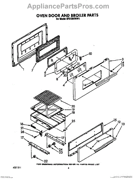 Parts for Whirlpool SF3100EWN1: 03 - Oven Door And Broiler Parts