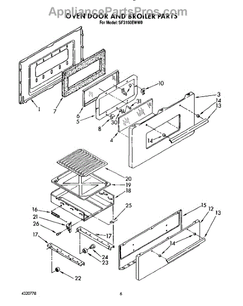 Parts for Whirlpool SF3100EWW0: 05 - Oven Door And Broiler Parts