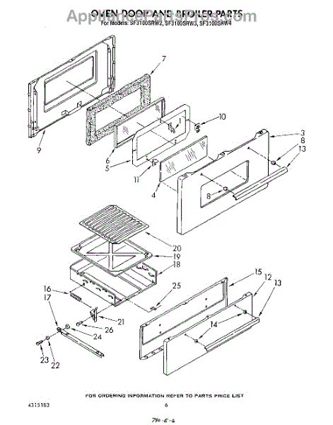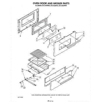 Parts for Whirlpool SF3100SRW4: 05 - Oven Door And Broiler Parts