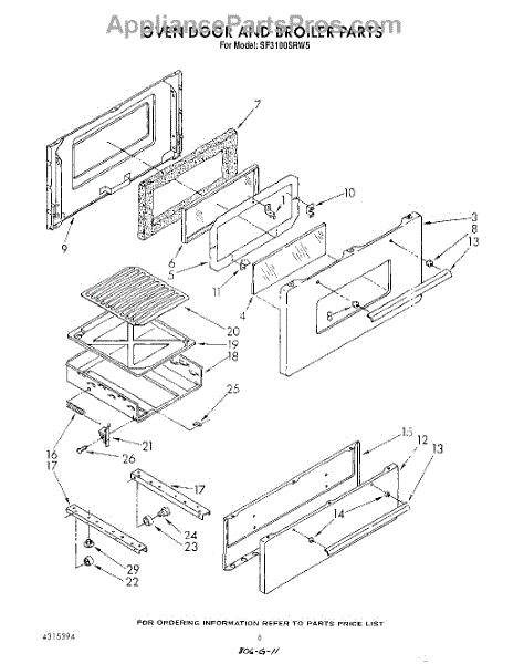Parts for Whirlpool SF3100SRW5: 05 - Oven Door And Broiler Parts