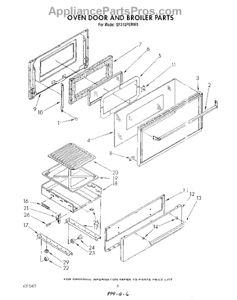 Parts for Whirlpool SF310PERW5: 05 - Oven Door And Broiler Parts