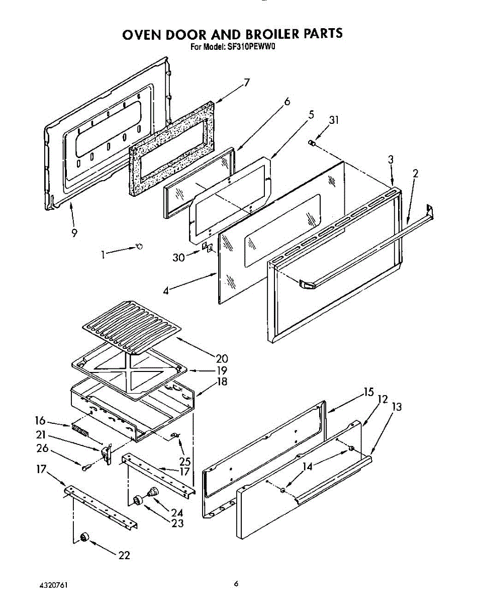 Parts for Whirlpool SF310PEWW0: 05 - Oven Door And Broiler Parts