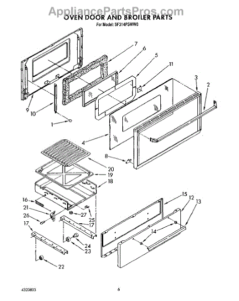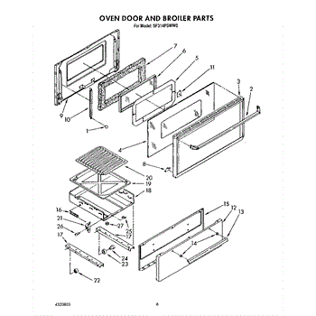 Parts for Whirlpool SF314PSWW0: 05 - Oven Door And Broiler Parts