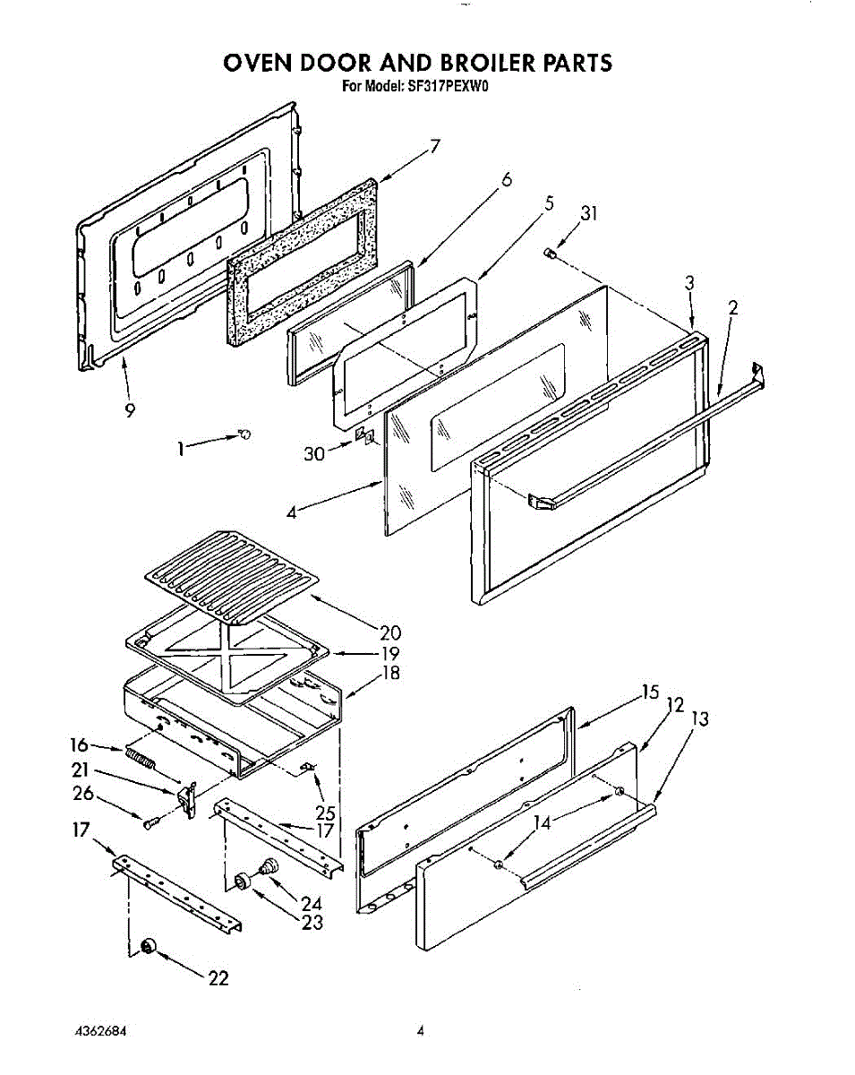Parts for Whirlpool SF317PEXW0: 03 - Oven Door And Broiler Parts