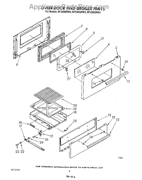 Parts for Whirlpool SF3300SRW3: 05 - Oven Door And Broiler Parts