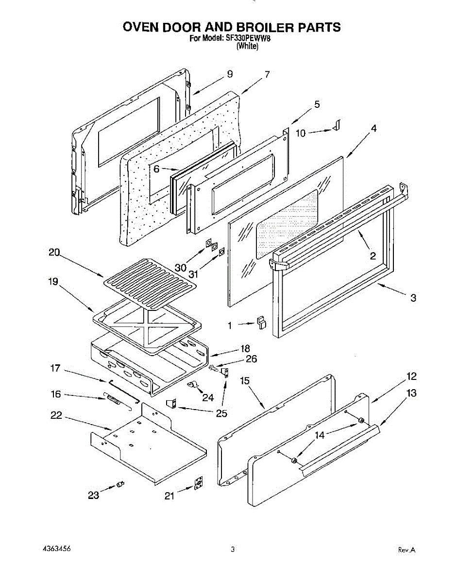 Parts for Whirlpool SF330PEWW8: 02 - Oven Door And Broiler Parts
