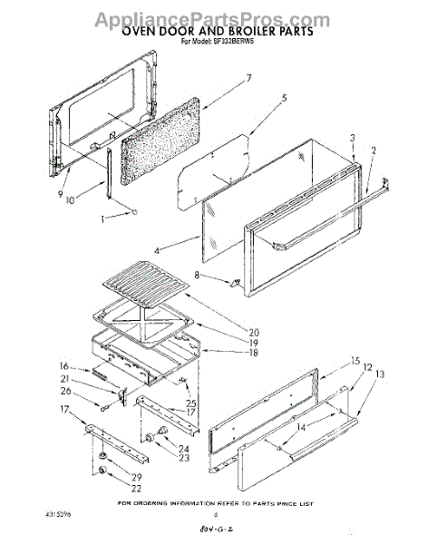 Parts for Whirlpool SF332BERW5: 05 - Oven Door And Broiler Parts