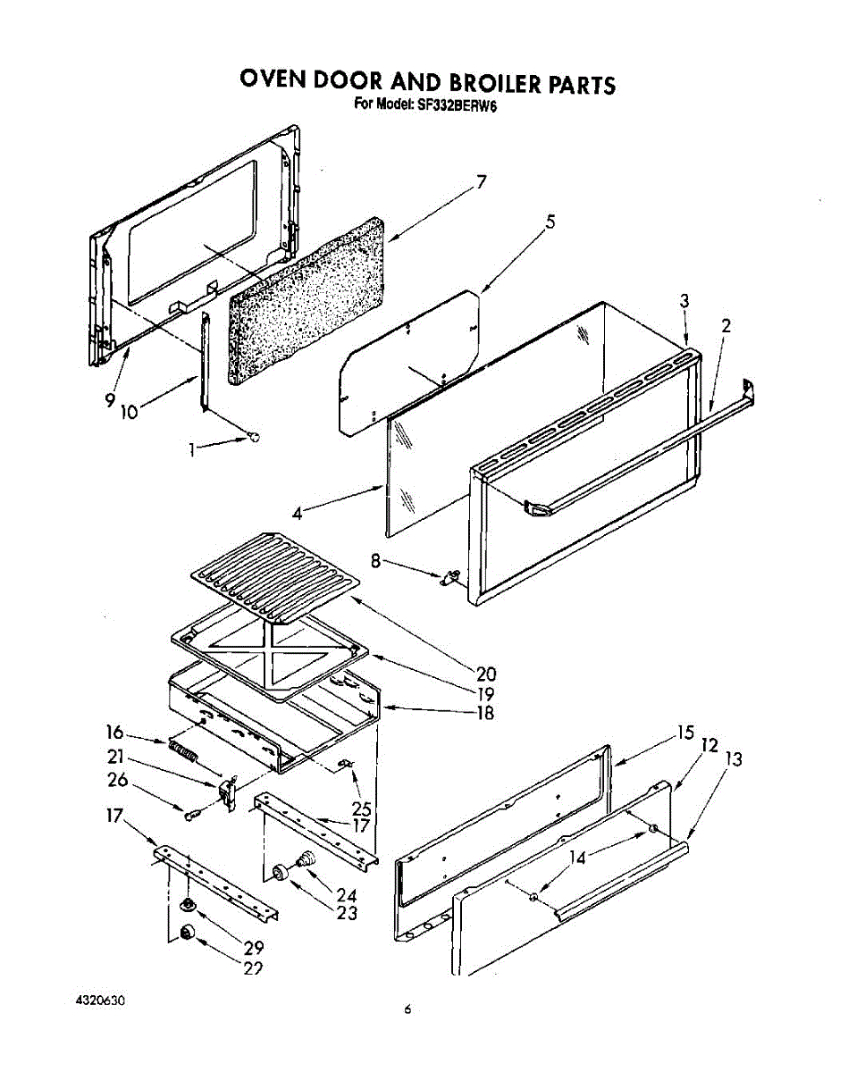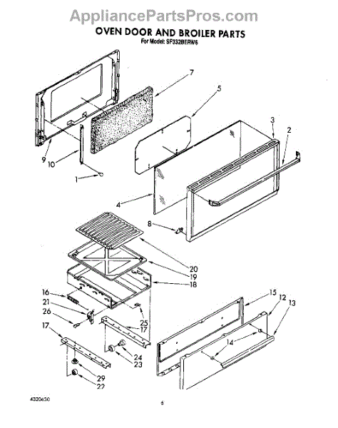 Parts for Whirlpool SF332BERW6: 05 - Oven Door And Broiler Parts