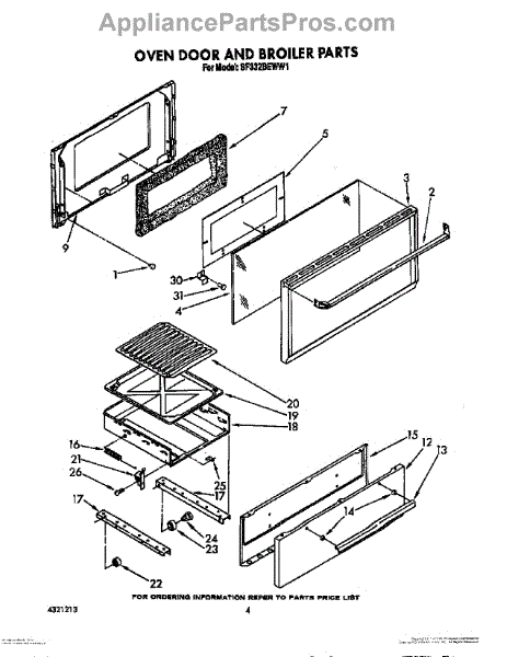 Parts for Whirlpool SF332BEWW1: 03 - Oven Door And Broiler Parts