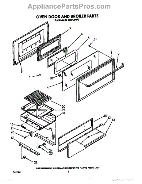 Parts for Whirlpool SF335PEWW0: 05 - Oven Door And Broiler Parts