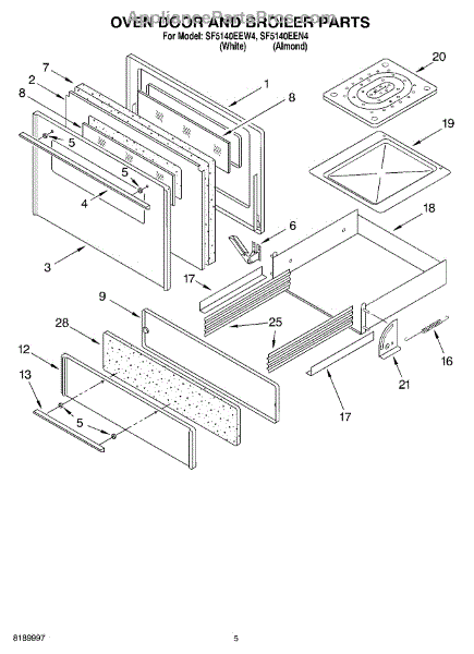 Parts for Whirlpool SF5140EEW4: 03 - Oven Door And Broiler Parts