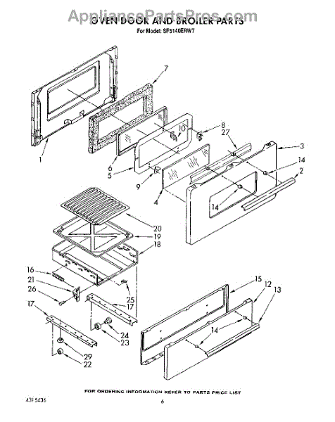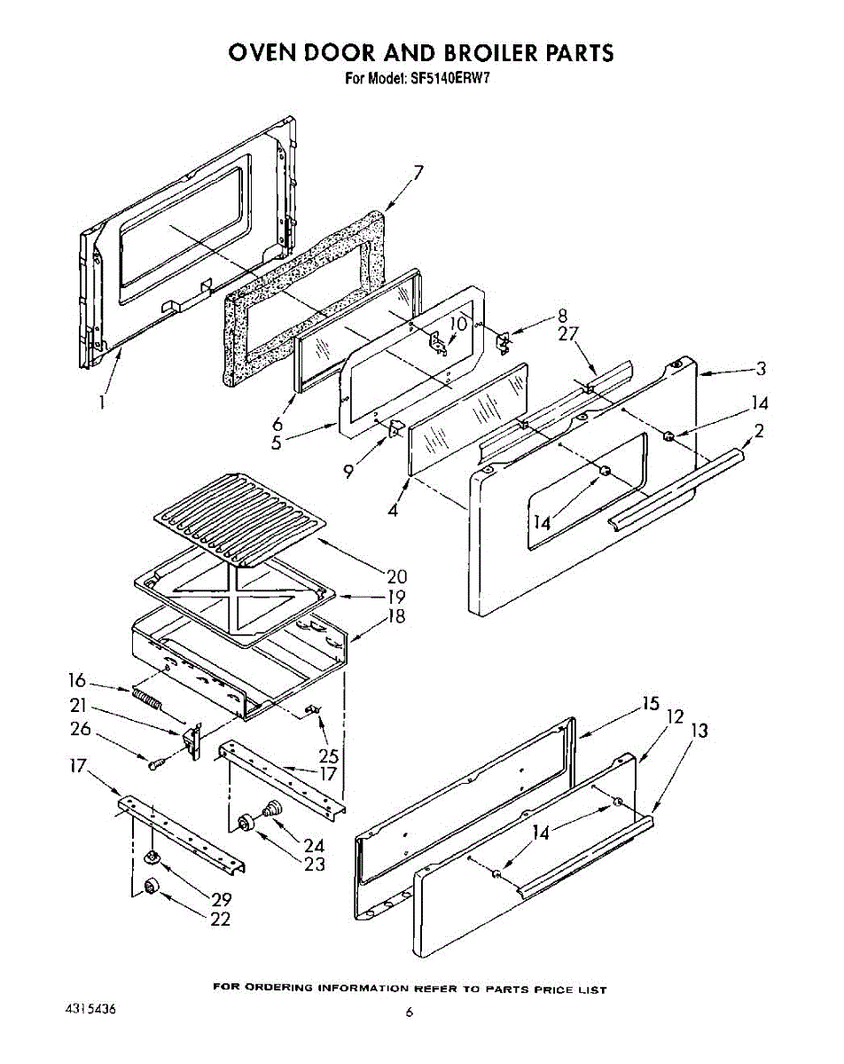 Parts for Whirlpool SF5140ERW7: 06 - Oven Door And Broiler Parts