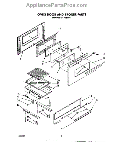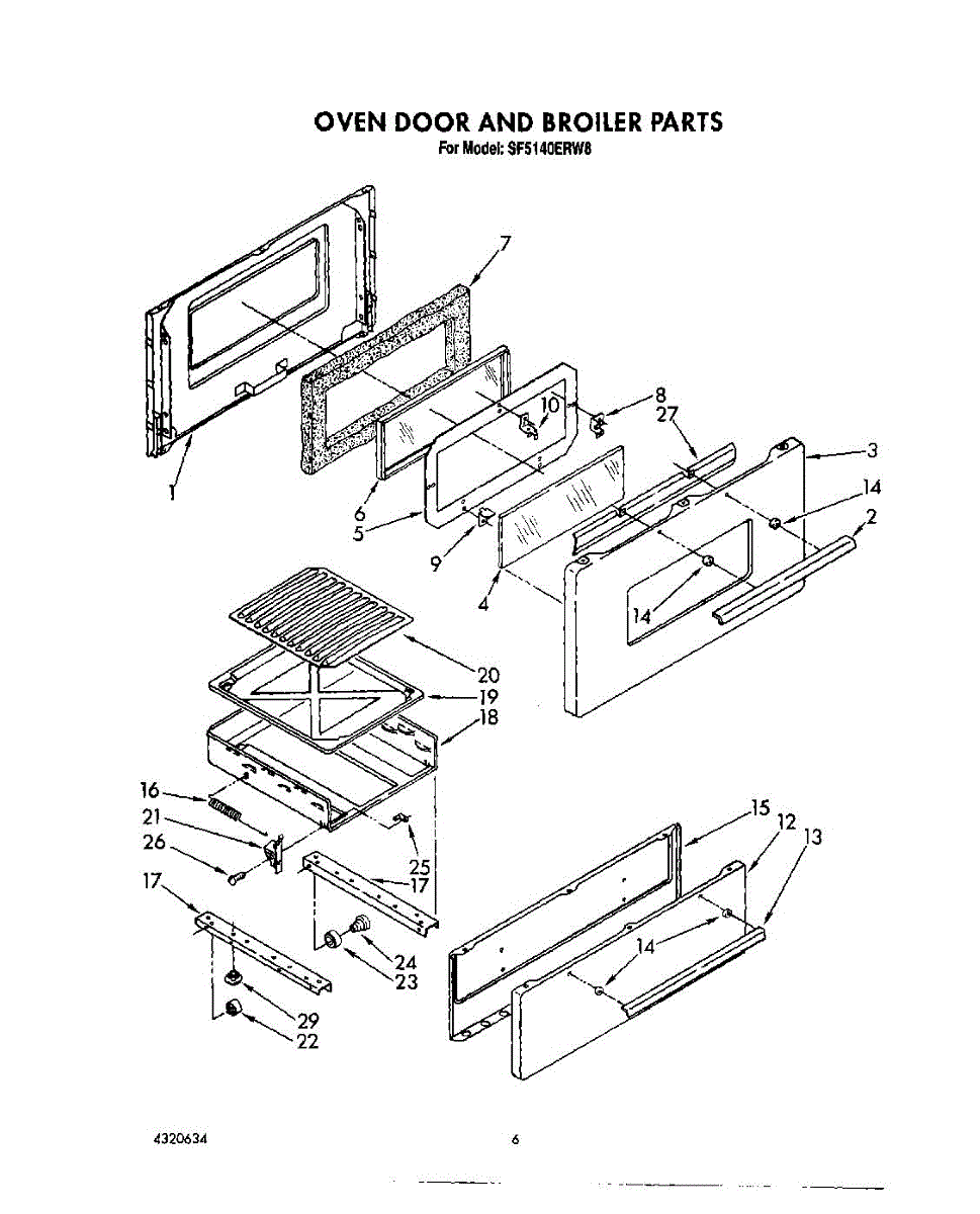 Parts for Whirlpool SF5140ERW8: 06 - Oven Door And Broiler Parts