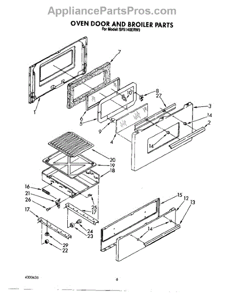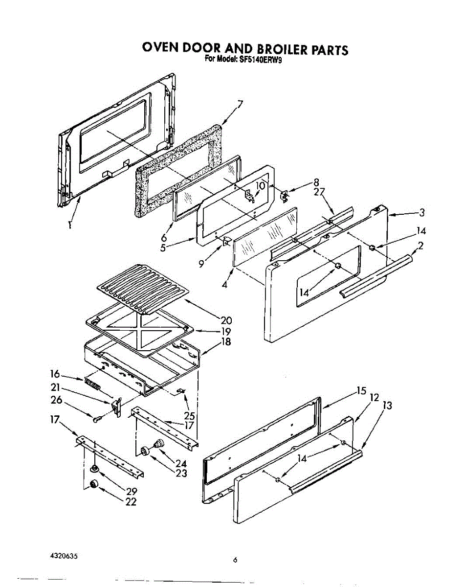 Parts for Whirlpool SF5140ERW9: 06 - Oven Door And Broiler Parts