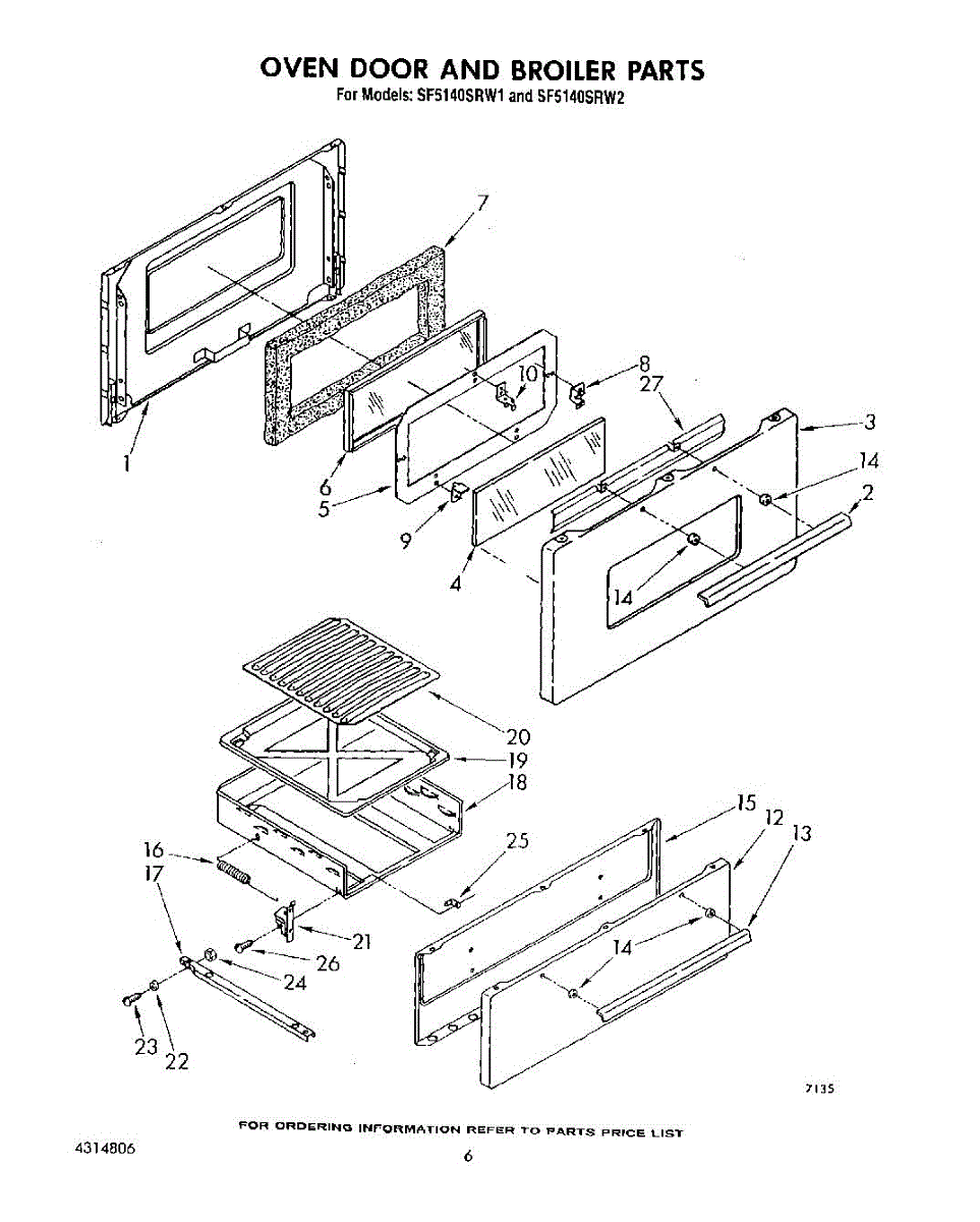 Parts for Whirlpool SF5140SRN1: 06 - Oven Door And Broiler Parts