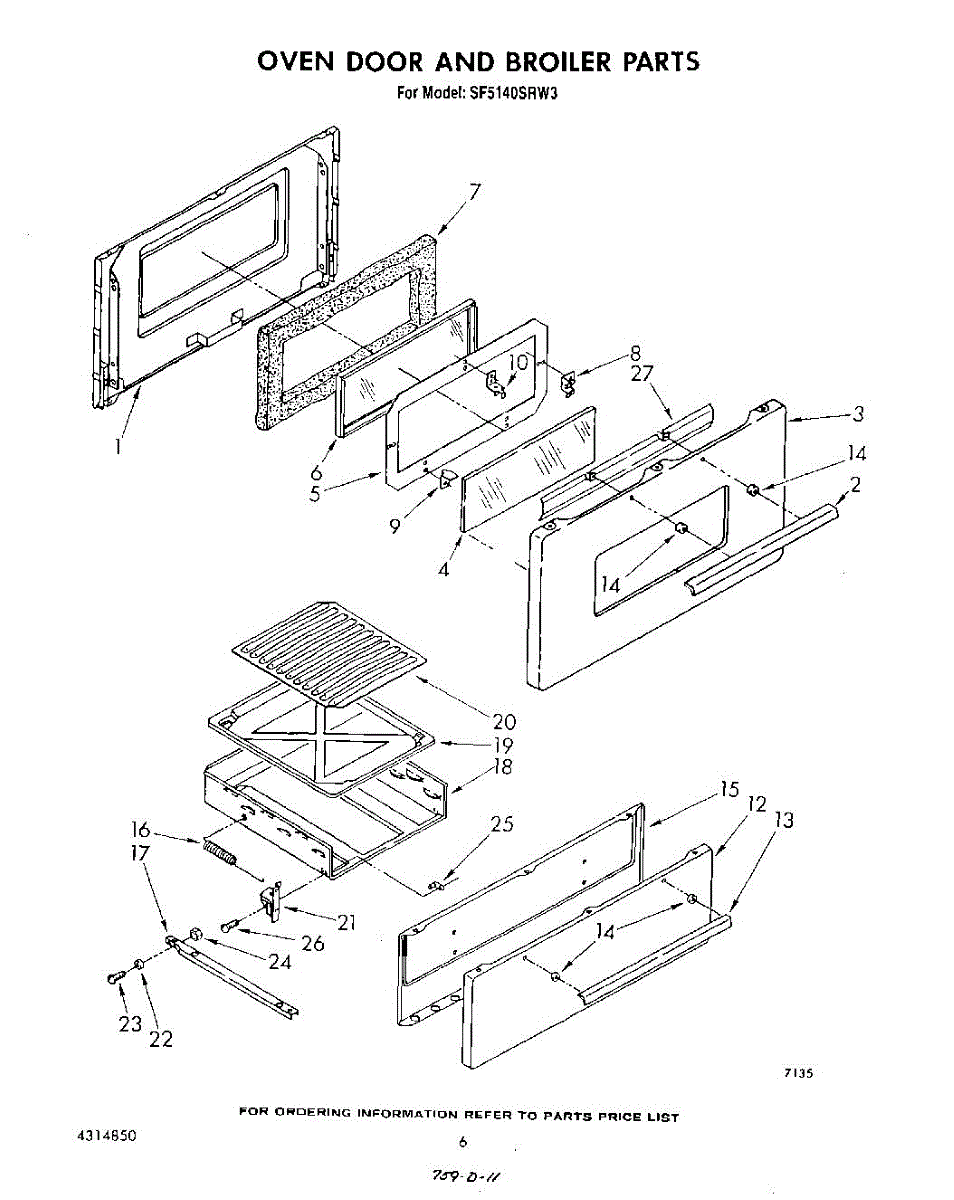 Parts for Whirlpool SF5140SRN3: 06 - Oven Door And Broiler Parts