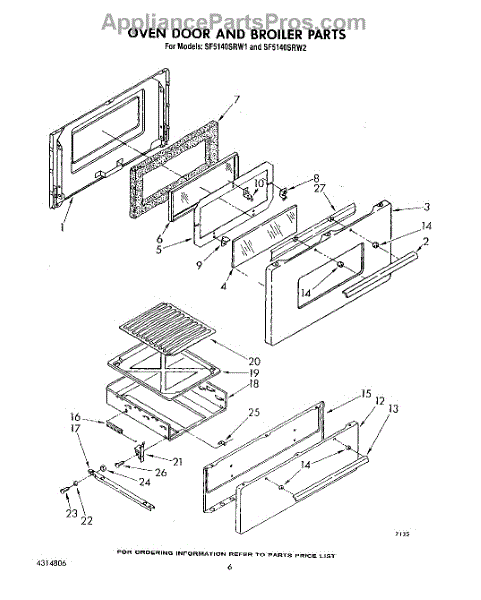 Parts for Whirlpool SF5140SRW2: 06 - Oven Door And Broiler Parts