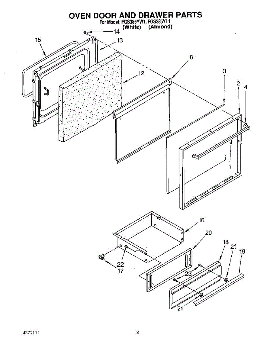 Parts for Roper FGS385YW1: 07 - Oven Door And Drawer Parts