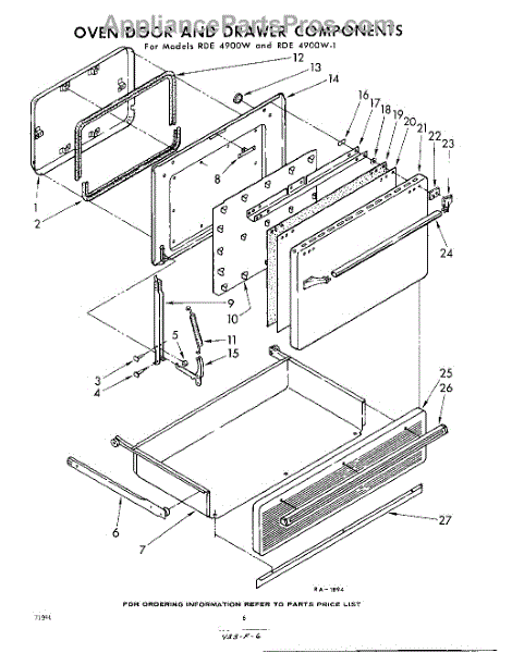 Parts for Whirlpool RDE4900W: 06 - Oven Door And Drawer Parts