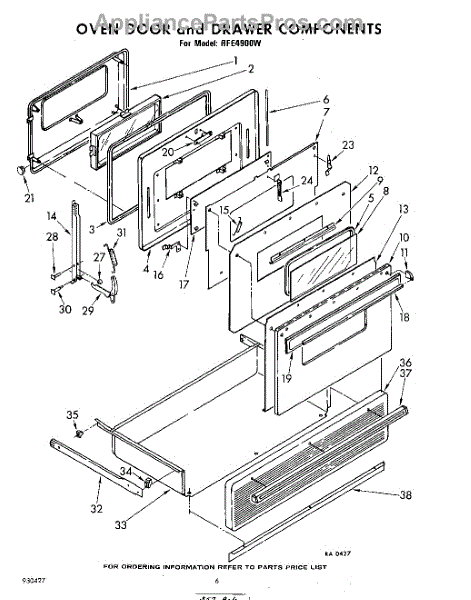 Parts for Whirlpool RFE4900W: 06 - Oven Door And Drawer Parts