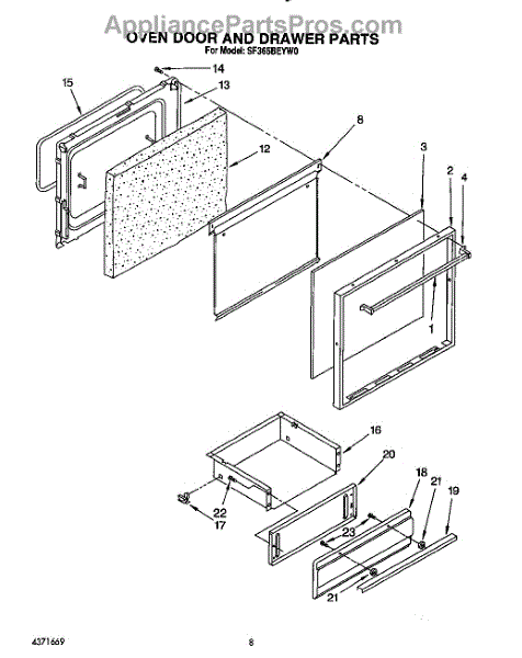 Parts for Whirlpool SF365BEYW0: 08 - Oven Door And Drawer Parts