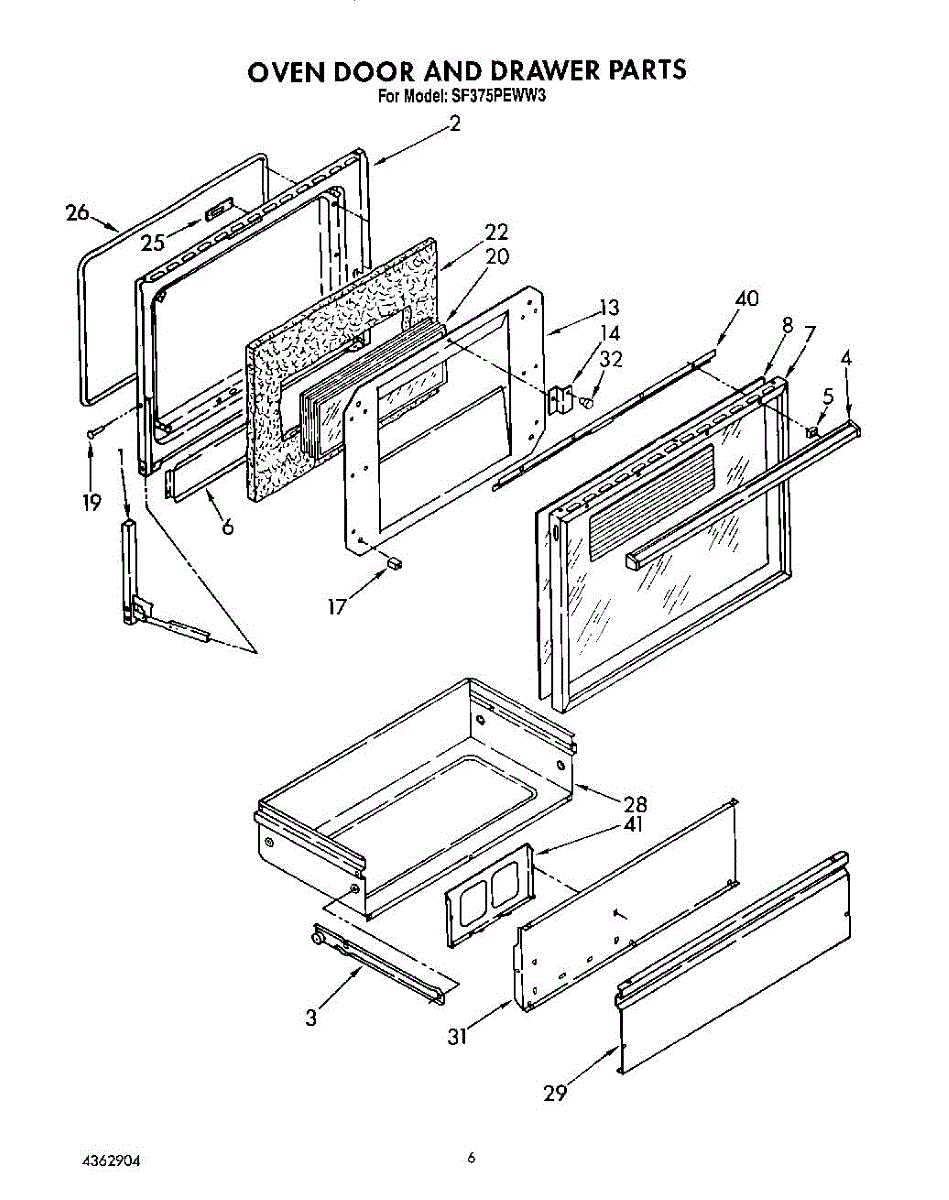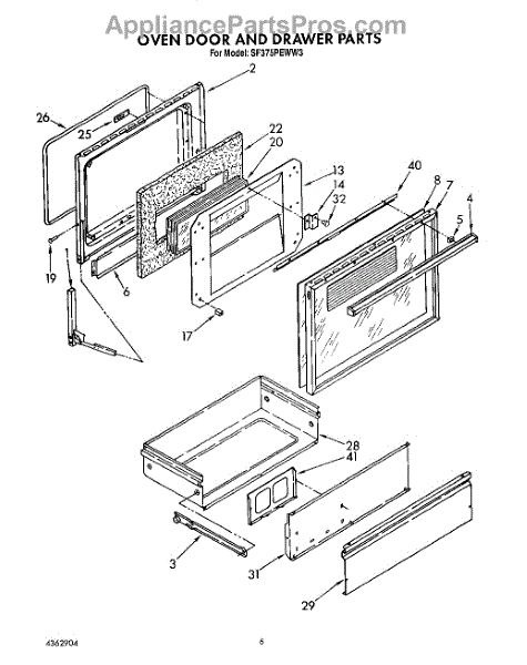 Parts for Whirlpool SF375PEWN3: 05 - Oven Door And Drawer Parts