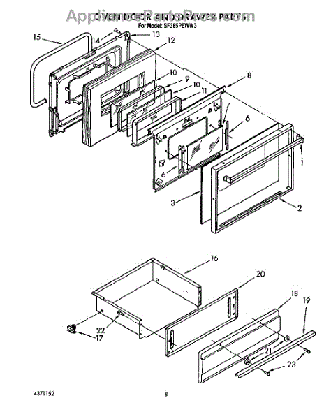 Parts for Whirlpool SF385PEWN3: 08 - Oven Door And Drawer Parts