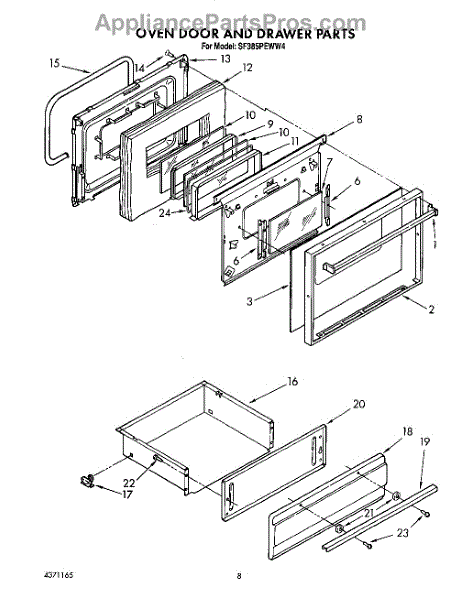 Parts for Whirlpool SF385PEWN4: 08 - Oven Door And Drawer Parts