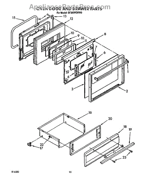 Parts for Whirlpool SF385PEWW0: 09 - Oven Door And Drawer Parts