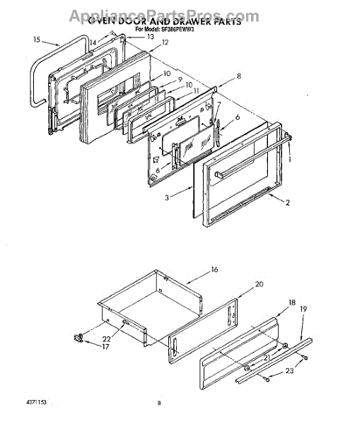 Parts for Whirlpool SF386PEWW3: 07 - Oven Door And Drawer Parts