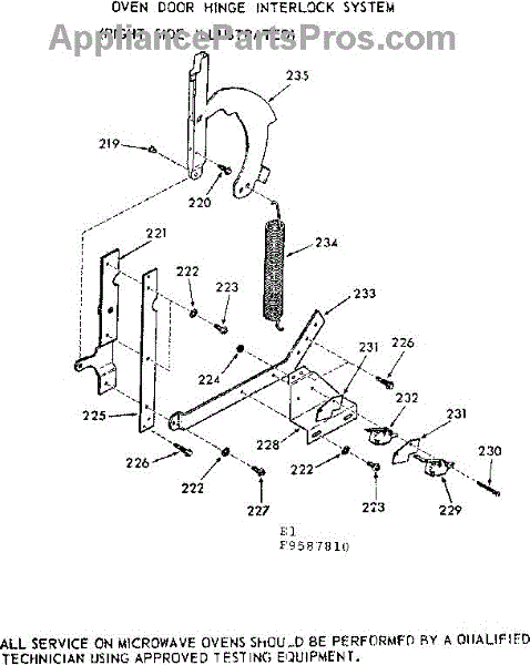 Parts for Kenmore 103.9587810 (1039587810, 103 9587810): Oven Door Hinge Interlock System Parts