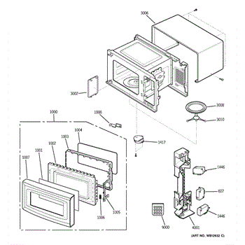 This molded resin cover is a protective plastic shield used inside the microwave. It helps protect internal components and ducting from splatter and debris and restores a secure, finished fit when the original cover is cracked or missing. What it does: