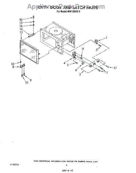 Parts for Whirlpool MW1200XS0: 04 - Oven Door And Latch Parts