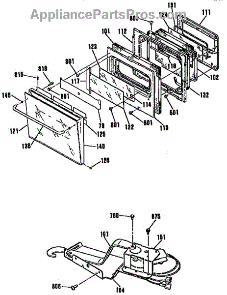 Parts for Ge JKP65WP1: Oven Door And Lock Parts