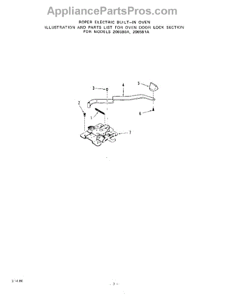 Parts for Roper 2065B0A: 03 - Oven Door Lock Parts