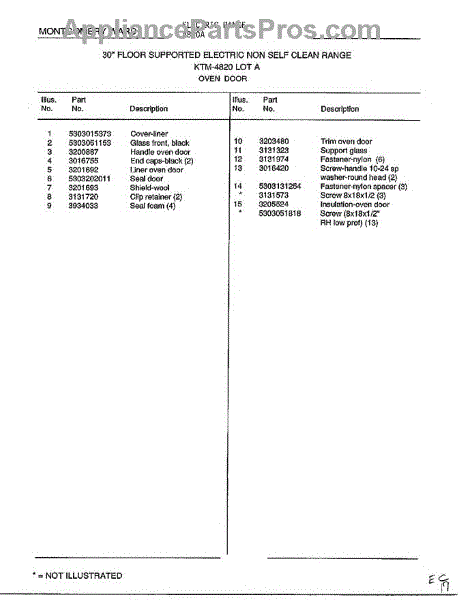 Parts for Frigidaire 4820A: Oven Door Page 2 Parts