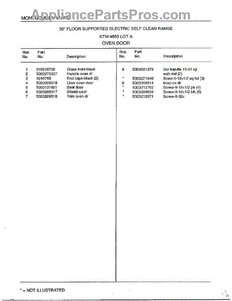 Parts for Frigidaire 4853A: Oven Door Page 2 Parts