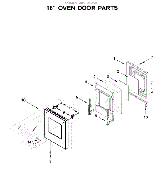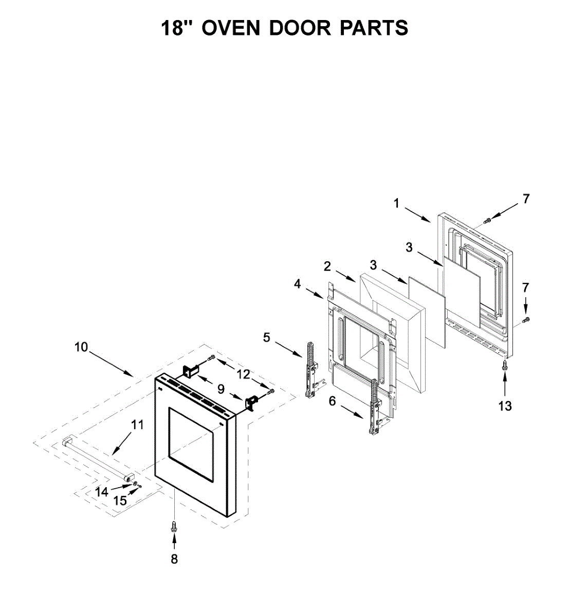 Parts for Kitchenaid KFDC558JMB00: 18" Oven Door Parts
