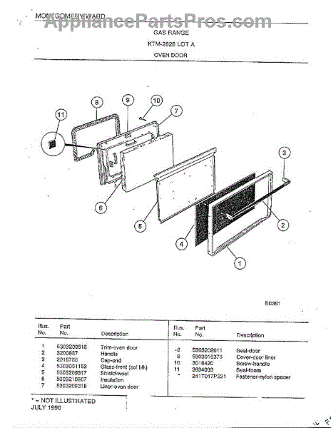 • Replace when the gasket is cracked, flattened, torn, brittle or the oven takes noticeably longer to preheat.