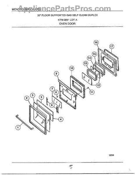 Parts for Frigidaire 2891: Oven Door Parts
