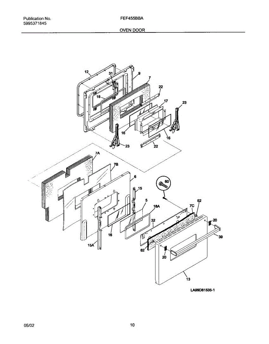 Parts for Frigidaire FEF455BBA: 09 - Oven Door Parts