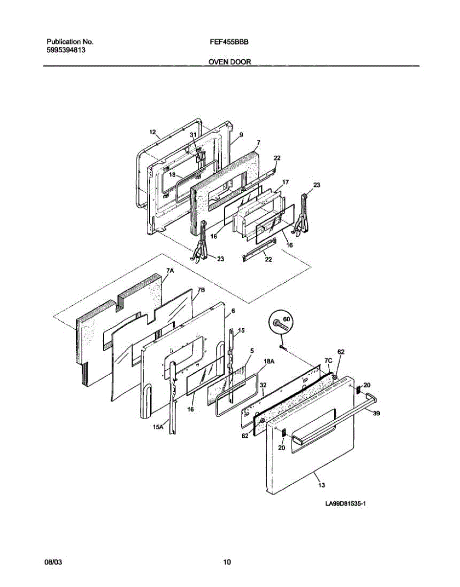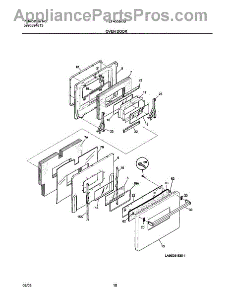 Parts for Frigidaire FEF455BBB: 09 - Oven Door Parts