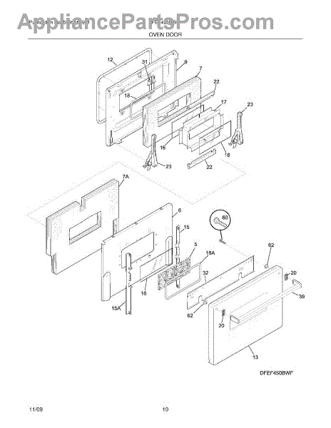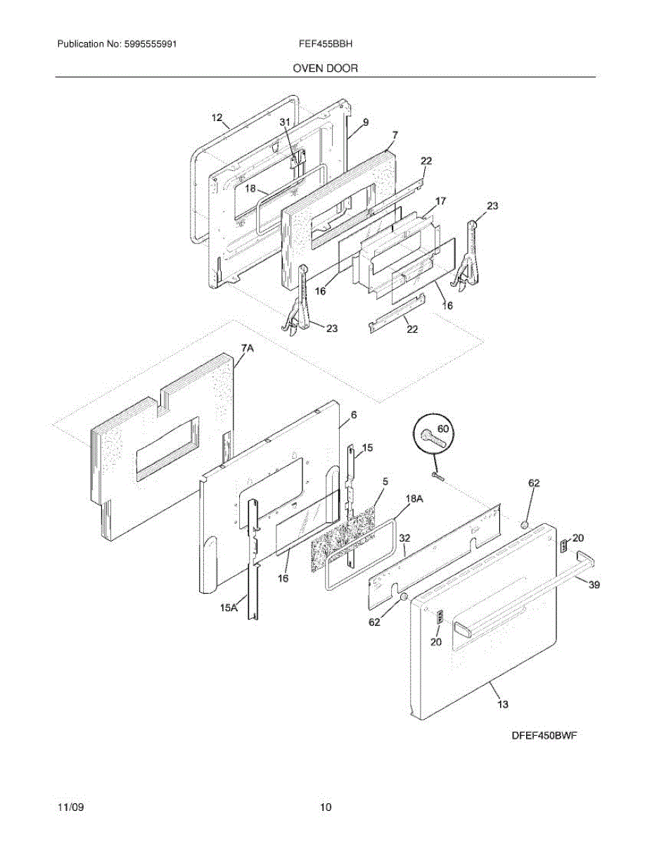 Parts for Frigidaire FEF455BBH: 09 - Oven Door Parts