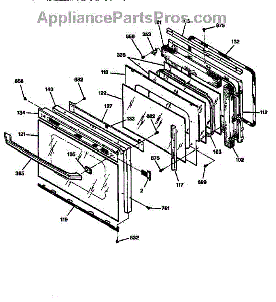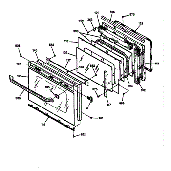 Parts for Ge JCP17WV2WW: Oven Door Parts